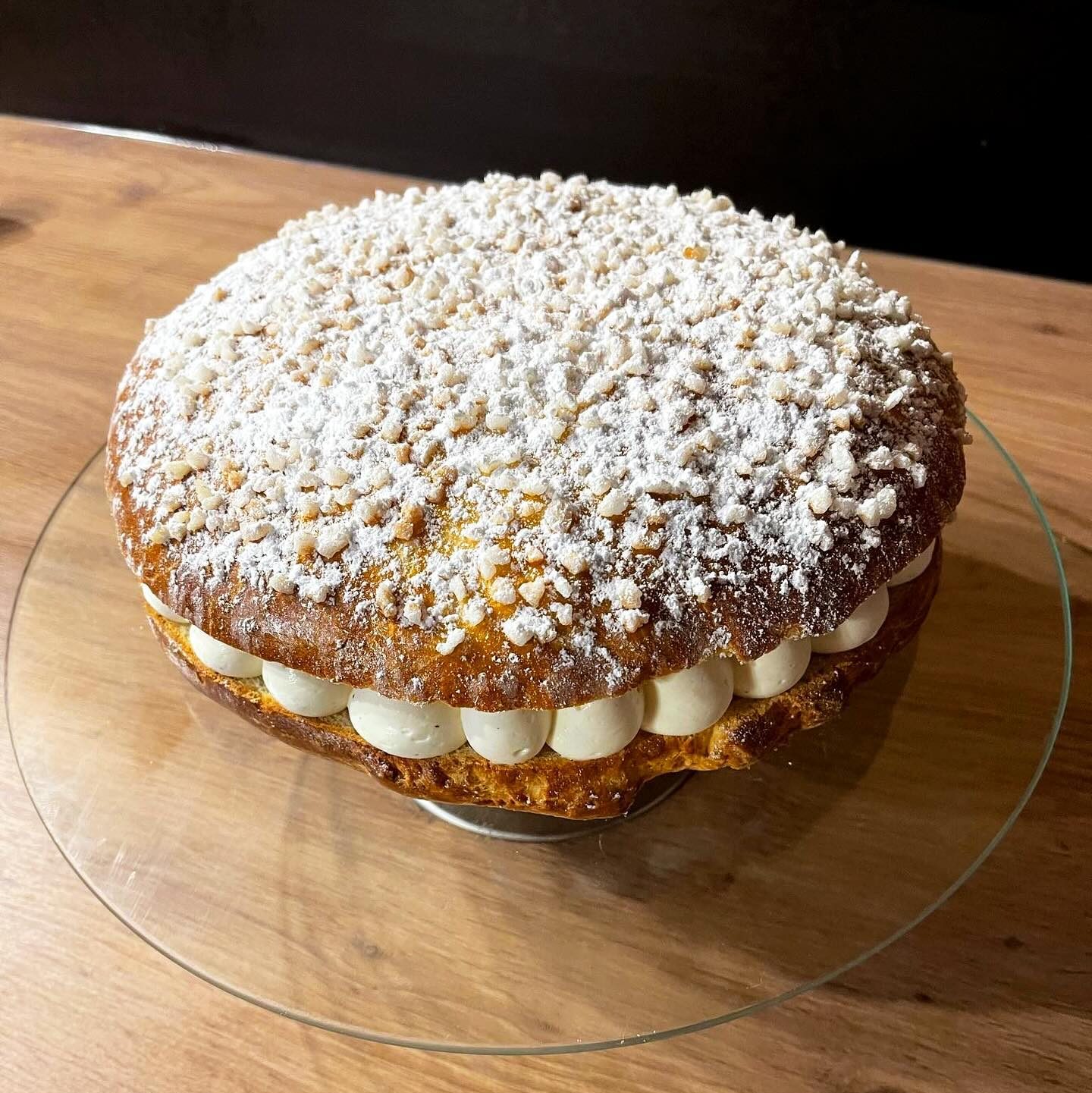 Pâte à choux, praliné coulant et crème mousseline au praliné